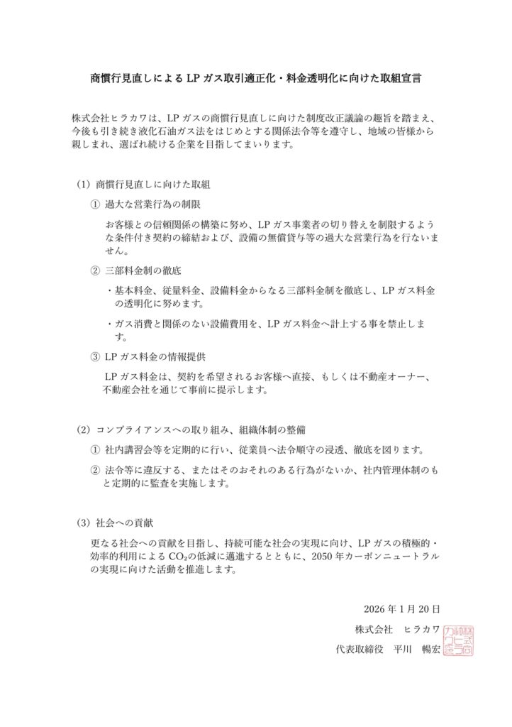 商慣行見直しによるLPガス取引適正化・料金透明化に向けた取組宣言