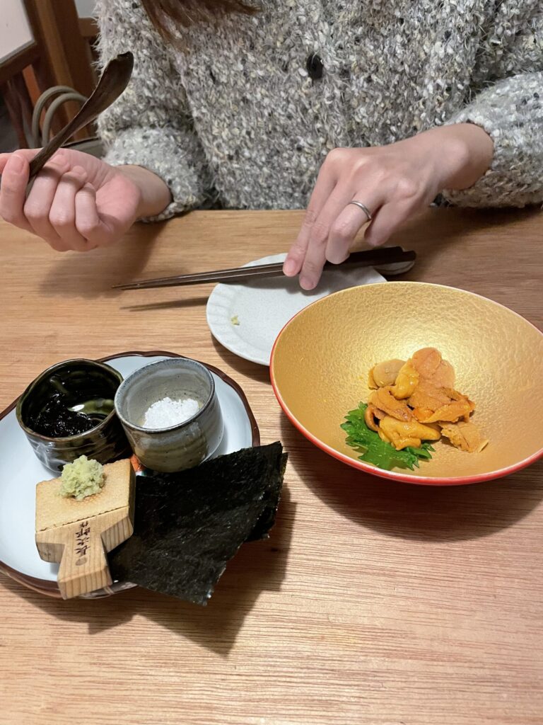 妻の一番の大好物が雲丹で【お寿司】と【雲丹とのり】というメニュ―で提供されてます🤗