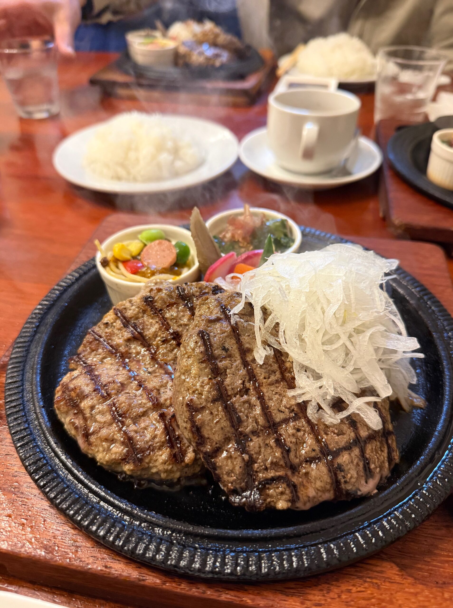 みんなで思い切って180g×2枚の、ダブルハンバーグを注文🍴牛肉100%らしく、お昼からガッツリ食べ、とても満腹になりました!本当に美味しかったです😋