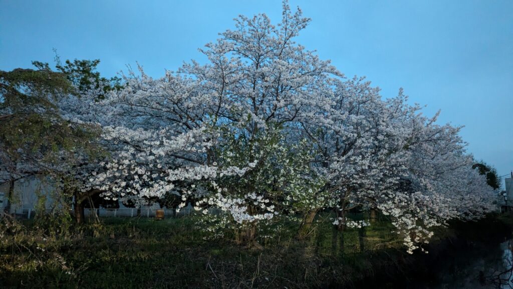 夜桜もキレイすぎて街灯や車のライトがうまい具合に照明になってくれて